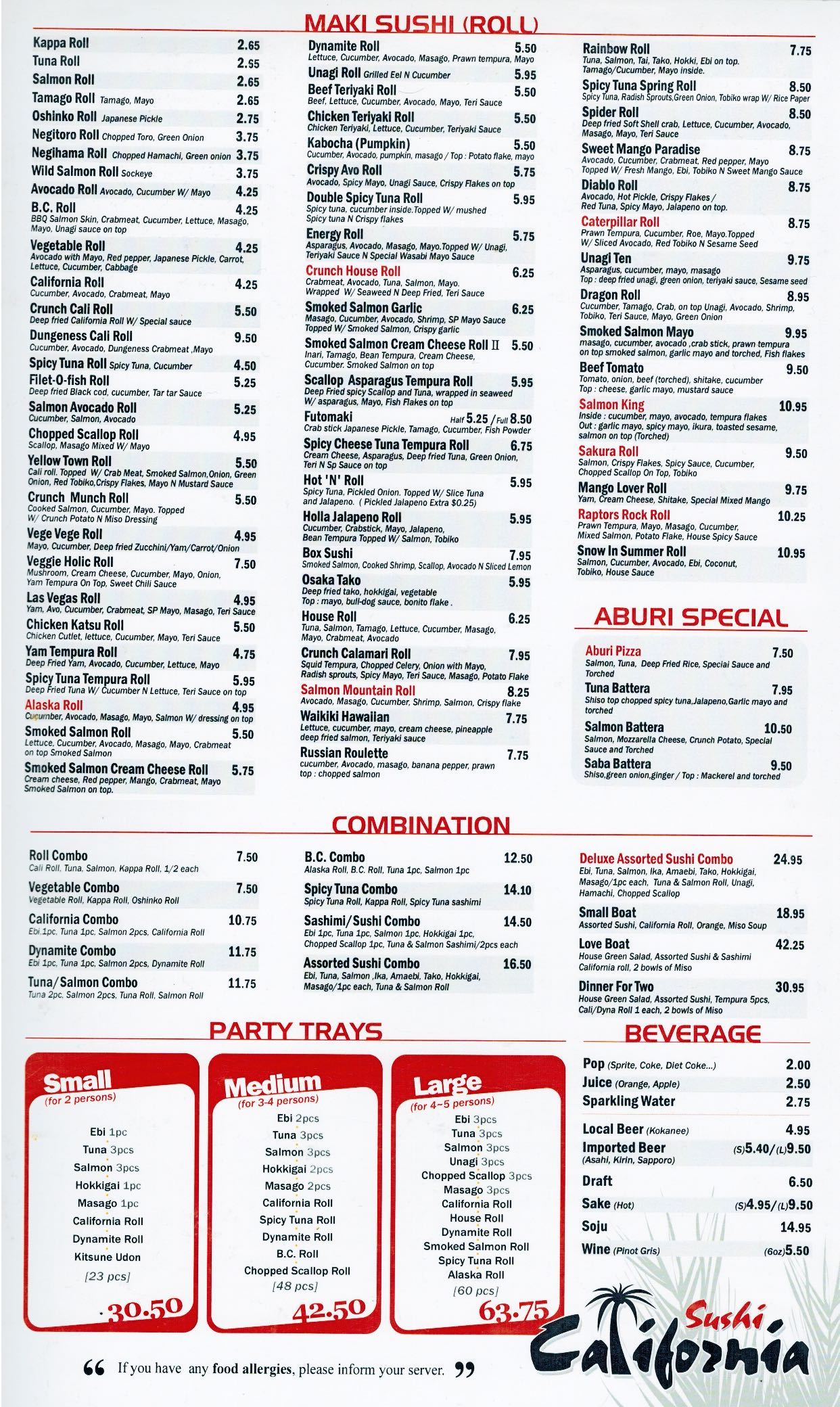 Read their take out menu. Not sure if its different from the main menu, but here it is.